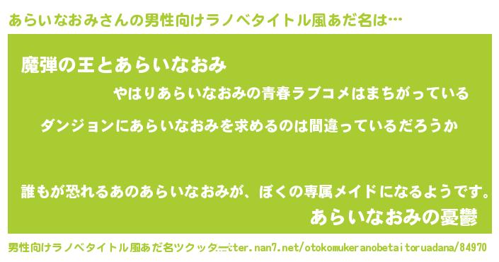 | 女子向けラノベタイトル風あだ名 | 『あらいなおみは平凡を望む』 |