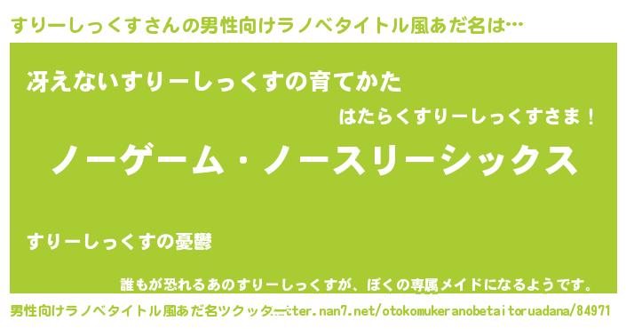 | 胡散臭い通販商品みたいなあだ名 | 『モンドセレクションを受賞した隕石のかけら…その名も「すりーしっくす」』 |