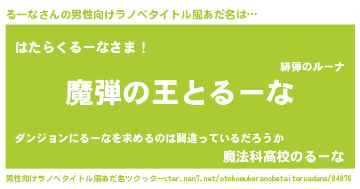 | 女子向けラノベタイトル風あだ名 | 『るーなが死なない童話 林檎のるーなの診療簿』 |