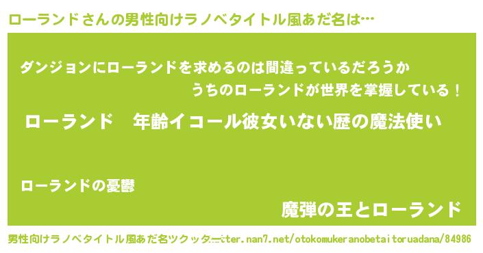 | 女子向けラノベタイトル風あだ名 | 『ローランドの玉の輿計画!』 |