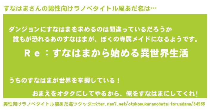 | 意味不明あだ名 | 『自称すなはま』『永久保存すなはま』 |