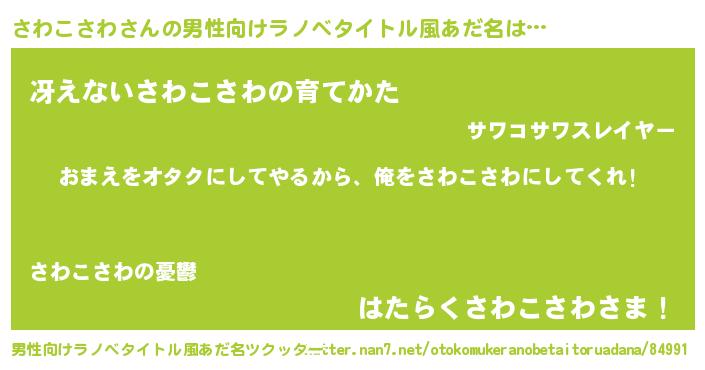 | ヒーロー風カッコイイあだ名 | 『正義の使者さわこさわ』『銀牙騎士サワ』 |