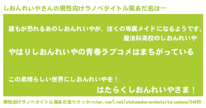 | 女子向けラノベタイトル風あだ名 | 『しおんれいやの雑貨屋さん』 |