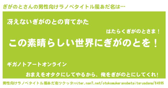 | 意味不明あだ名 | 『住所不定無職ぎがのと(86歳)』 |