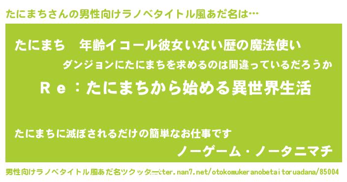 | 市区町村名 | 『横たに市』『福たに市』『たに島市』 |