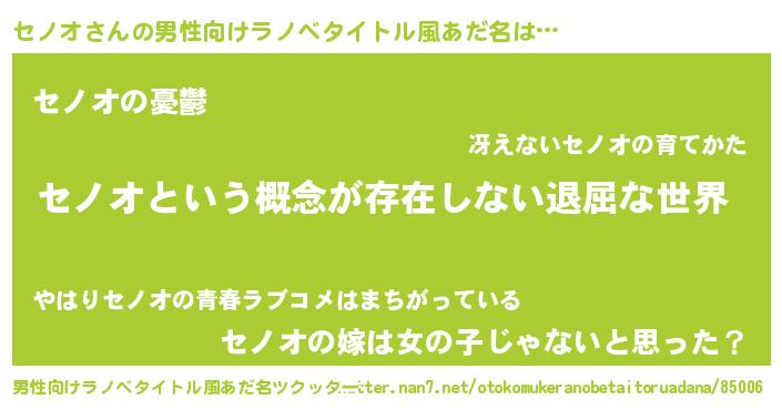 | 女子向けラノベタイトル風あだ名 | 『セノオの契約王妃』『セノオ様がみてる』 |