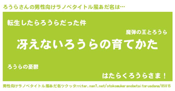 | 意味不明あだ名 | 『もやし科ろうら属』『ペロリンろうら』 |