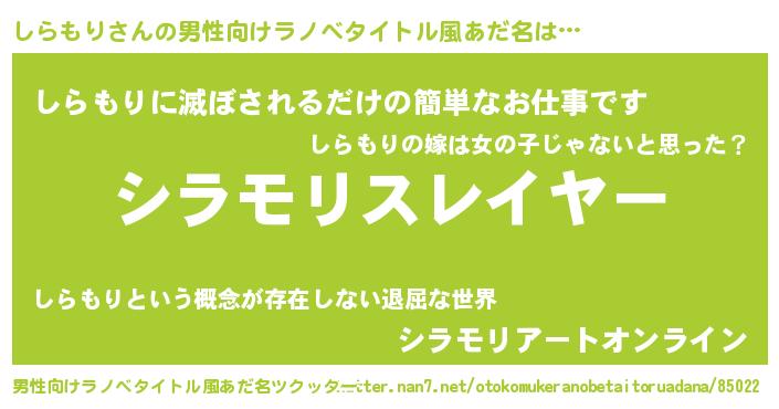 | 胡散臭い通販商品みたいなあだ名 | 『必ず成功するブレスレット…その名も「しらもり」』 |