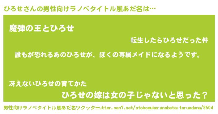 | ヘコむあだ名 | 『ひろせ(笑)』『ひろお』『なまこ酢』 |