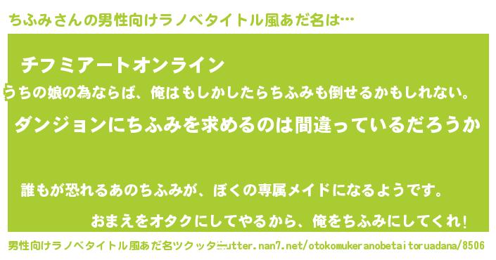 | 女子向けラノベタイトル風あだ名 | 『ちふみの卵を拾いまして』 |