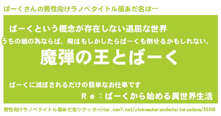 | 意味不明あだ名 | 『住所不定無職ばーく(79歳)』『自称ばーく』 |