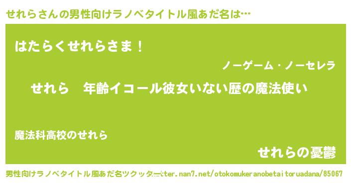 | 胡散臭い通販商品みたいなあだ名 | 『億万長者になれるブレスレット…その名も「せれら」』 |