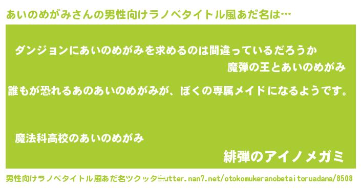 | 胡散臭い通販商品みたいなあだ名 | 『来世でも幸せになれる健康食品…その名も「あいのめがみ」』 |