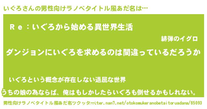 | 女子向けラノベタイトル風あだ名 | 『いぐろは平凡を望む』 |