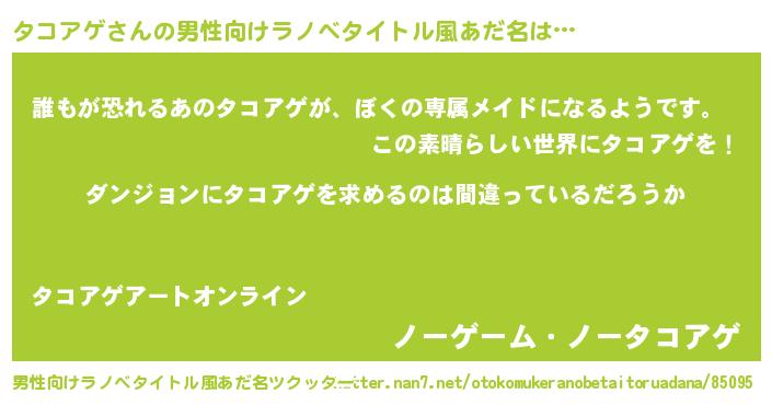 | 女子向けラノベタイトル風あだ名 | 『タコアゲは平凡を望む』 |