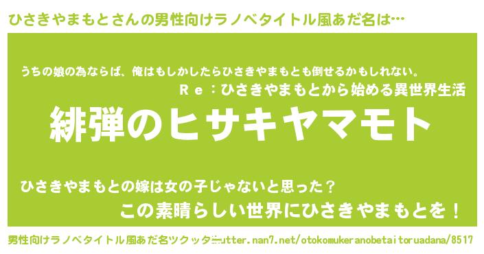 | 伝説のあだ名 | 『秘められし忍者ひさきやまもと』 |