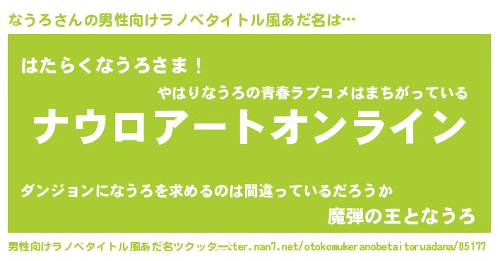 | 胡散臭い通販商品みたいなあだ名 | 『億万長者になれる水晶球…その名も「なうろ」』 |