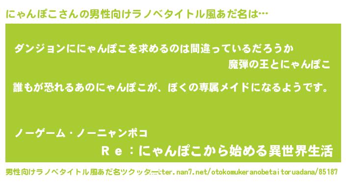 | 胡散臭い通販商品みたいなあだ名 | 『前代未聞の健康食品…その名も「にゃんぽこ」』 |
