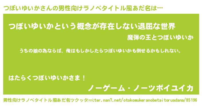 | 女子向けラノベタイトル風あだ名 | 『つぼいゆいか伯爵の花嫁』 |
