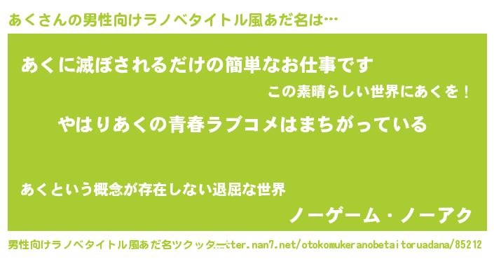 | 女子向けラノベタイトル風あだ名 | 『あくの雑貨屋さん』『死神あくの再婚』 |