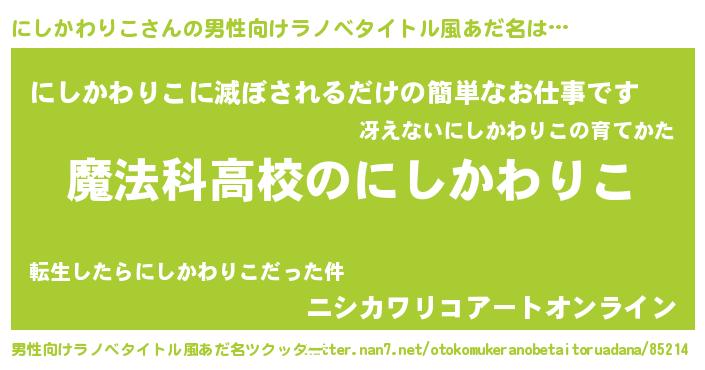 | 女子向けラノベタイトル風あだ名 | 『にしかわりこアンティーク』 |