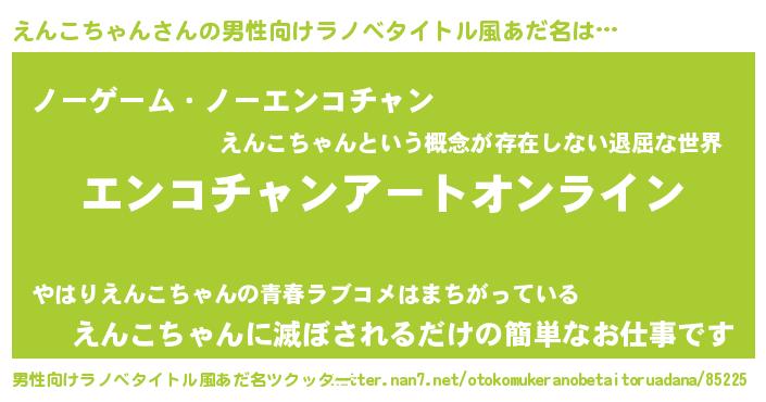 | ヘコむあだ名 | 『えんふぇ~』『えんこちゃん(小並感)』 |
