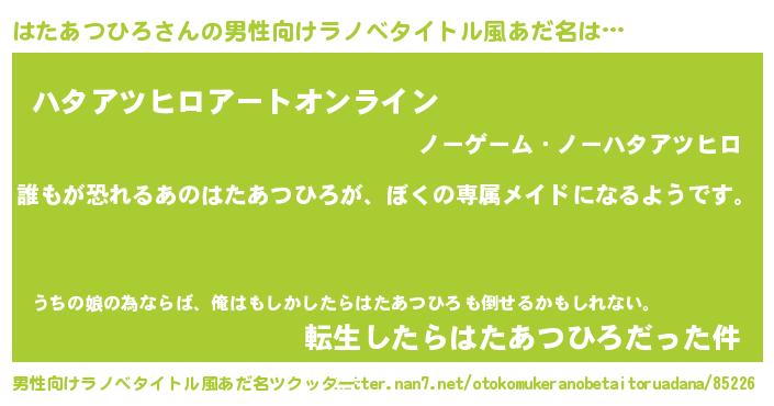 | 意味不明あだ名 | 『永久保存はたあつひろ』 |