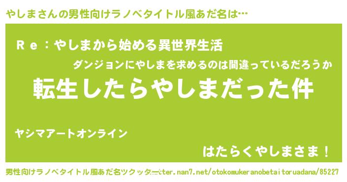 | ヒーロー風カッコイイあだ名 | 『最強戦士ヤシマ』『幻影騎士ヤシ』 |