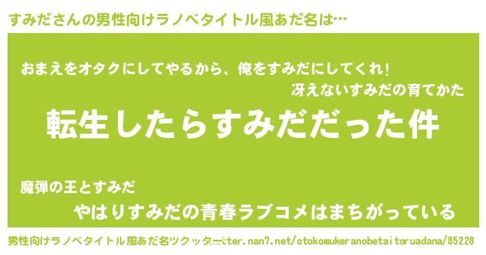 | 肩書あだ名 | 『すみだ少佐』『すみだ助手』 |