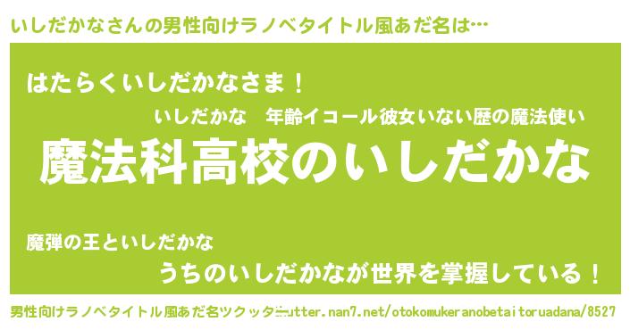 | ヒーロー風カッコイイあだ名 | 『ウルトラ戦士イシダカナ』 |