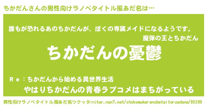 | 胡散臭い通販商品みたいなあだ名 | 『必ず成功する霊験あらたかなお札…その名も「ちかだん」』 |