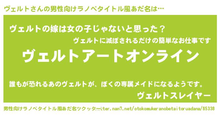 | ヒーロー風カッコイイあだ名 | 『スーパーヴェルト』『幻影騎士ヴェ』 |