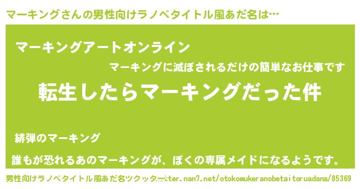 | 胡散臭い通販商品みたいなあだ名 | 『モテモテ間違いなし霊験あらたかなお札…その名も「マーキング」』 |