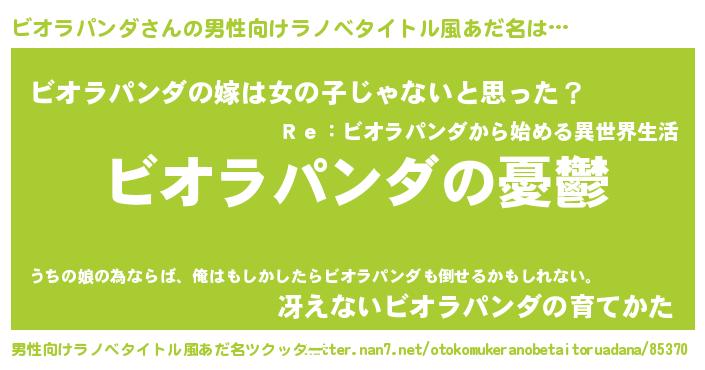 | 女子向けラノベタイトル風あだ名 | 『ビオラパンダ姫と円卓の騎士』 |