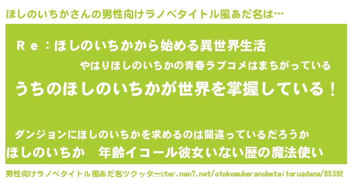 | ヒーロー風カッコイイあだ名 | 『最強戦士ホシノイチカ』『暗黒騎士ホシ』 |