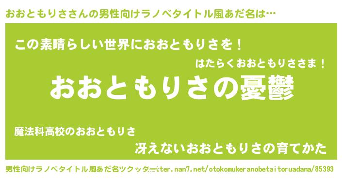 | 女子向けラノベタイトル風あだ名 | 『(仮)おおともりさのやんごとなき事情』 |