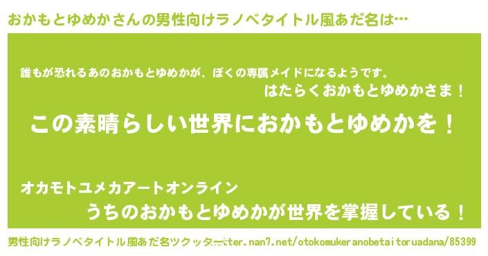 | 女子向けラノベタイトル風あだ名 | 『悪役おかもとゆめかに転生したようですが、知った事ではありません』 |