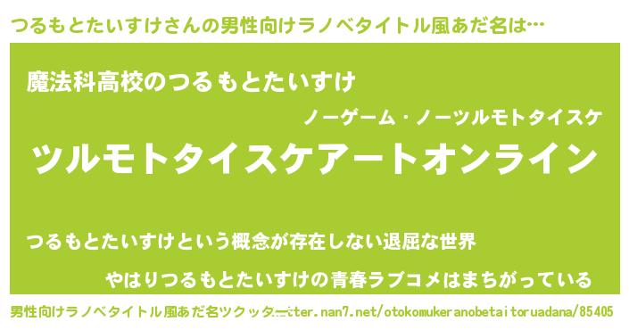 | 女子向けラノベタイトル風あだ名 | 『誰かこのつるもとたいすけを説明してください! ~契約から始まるウェディング~』 |
