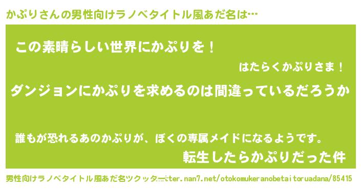 | 女子向けラノベタイトル風あだ名 | 『かぷりの卵を拾いまして』 |