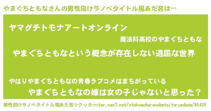 | ヘコむあだ名 | 『やまぐちともな(小並感)』『やまふぇ~』 |