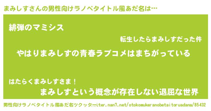 | 女子向けラノベタイトル風あだ名 | 『まみしすの雑貨屋さん』 |