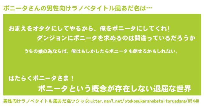 | 女子向けラノベタイトル風あだ名 | 『ポニータの婚約者』 |