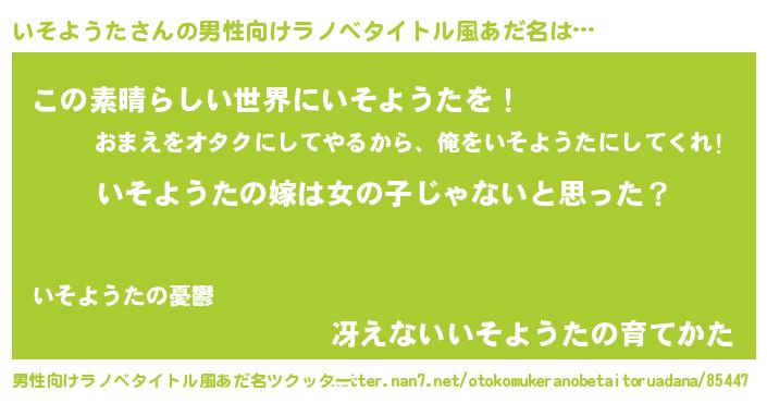 | 女子向けラノベタイトル風あだ名 | 『いそようた様がみてる』 |