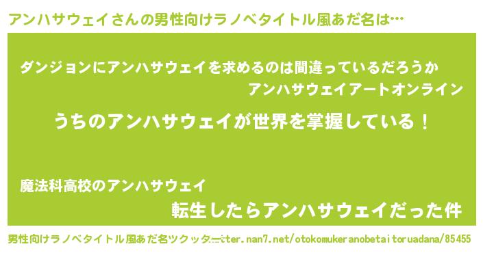 | ピコ太郎風あだ名 | 『アン八郎』『アコ六郎』『アア太郎』 |