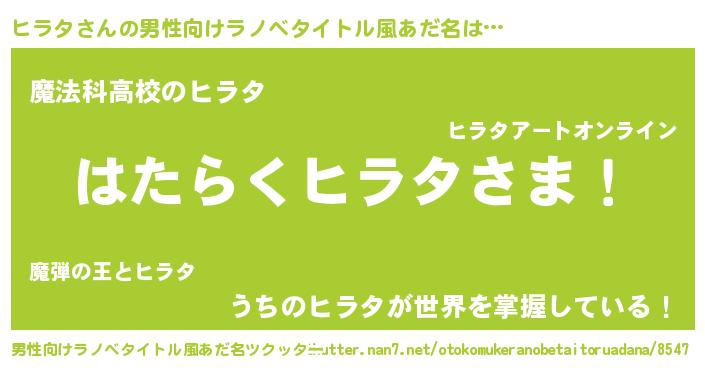 | ヒーロー風カッコイイあだ名 | 『超時空戦士ヒラタ』『スーパーヒラタ』 |