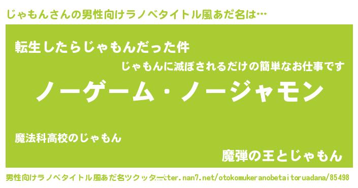 | 女子向けラノベタイトル風あだ名 | 『死神じゃもんの再婚』 |