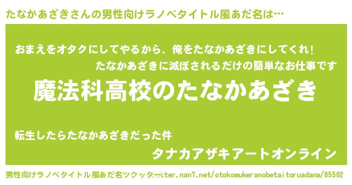| 女子向けラノベタイトル風あだ名 | 『たなかあざきなんてお断りですっ。』 |