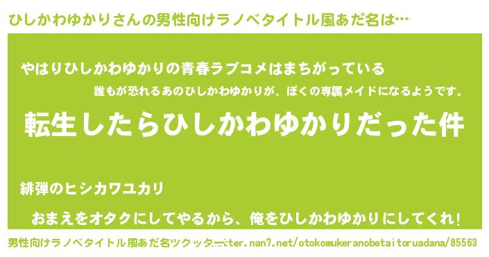 | 女子向けラノベタイトル風あだ名 | 『ひしかわゆかりの玉の輿計画!』 |