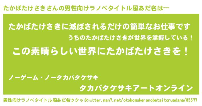 | 女子向けラノベタイトル風あだ名 | 『乙女ゲームの破滅フラグしかない悪役たかばたけさきに転生してしまった…』 |