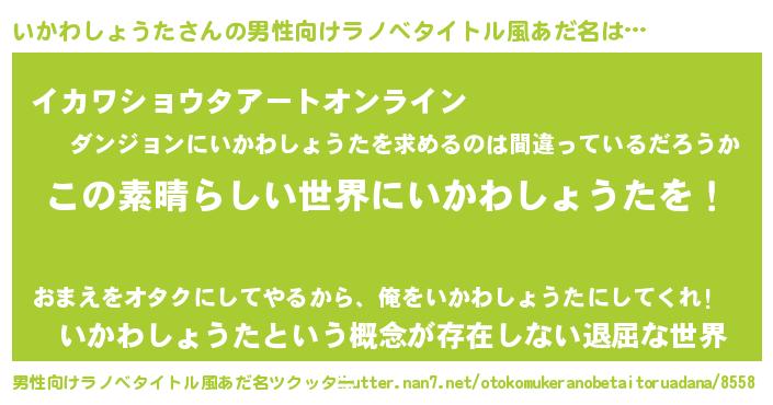 | 意味不明あだ名 | 『住所不定無職いかわしょうた(59歳)』 |